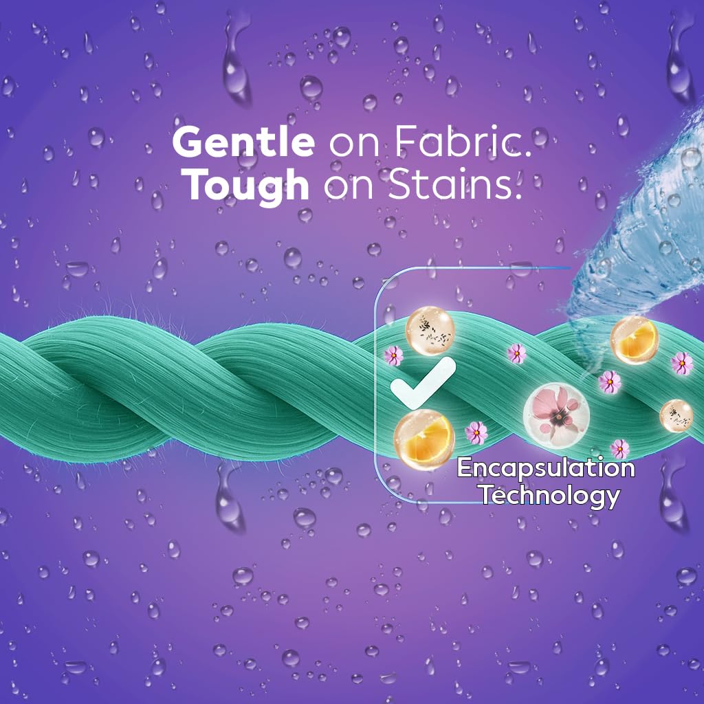 Infused with a 3D encapsulated lavender fruity perfume, that stays on clothes for days. This low-suds, easy-rinse liquid detergent, ensures effective cleaning with less water.